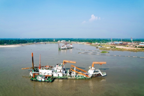 技術和資金的投入,助力了區域發展,贏得了當地民心,帶來了共建共贏,也成為公司高質量共建“一帶一路”的最美見證。12月下旬,隨著一條條船舶、一輛輛裝載機滿載著125千克土工袋抵達施工現場,孟加拉河道整治項目北岸下游端頭筑堤施工作業正式拉開帷幕,也為這個世界上最大的河道整治項目收官按下了快進鍵。8年來,港航人在孟加拉的母親河上,以拼搏奮斗書寫了護河治水的答卷,守護了兩岸人民的安瀾。